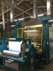 Por meio de Calandras Compactadoras, o artigo sai em rolos prontos para serem embalados e entregues ao cliente. A máquina possui feltro e placas de teflon que por meio de temperatura, cerca de 150 oC, fazem a alimentação do tecido, compactando a trama e com isso diminuindo o grau de encolhimento do produto final, que é o objetivo principal do processo.